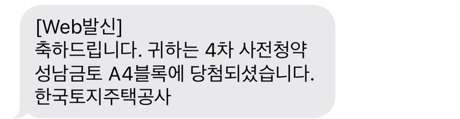 22년 2월경 받았던 사전청약 1차 당첨자 발표 문자