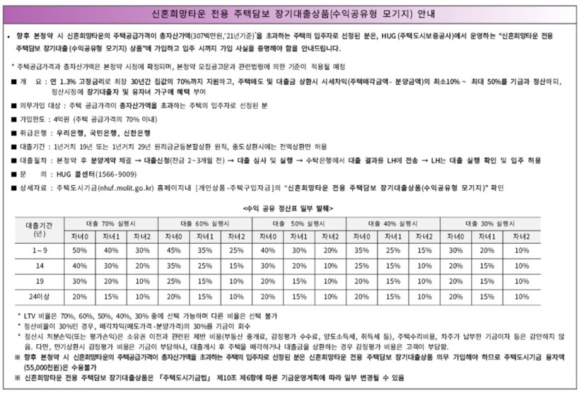무엇보다 우리에게 정말 좋은 조건이라고 생각한 부분은 신혼희망타운 전용 주택담보 장기 대출상품(수익공유형 모기지)였다.