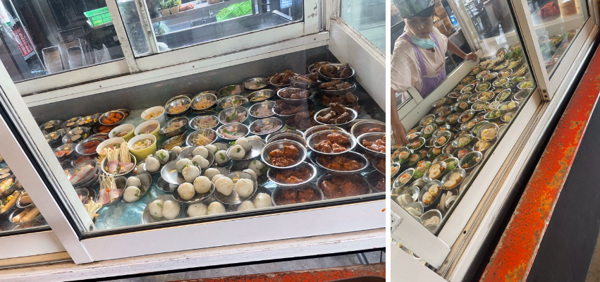 밑반찬과 딤섬 등 원하는 걸 골라서 주황옷 입은 직원에게 주면 조리해서 테이블로 가져다주는 시스템이다.
