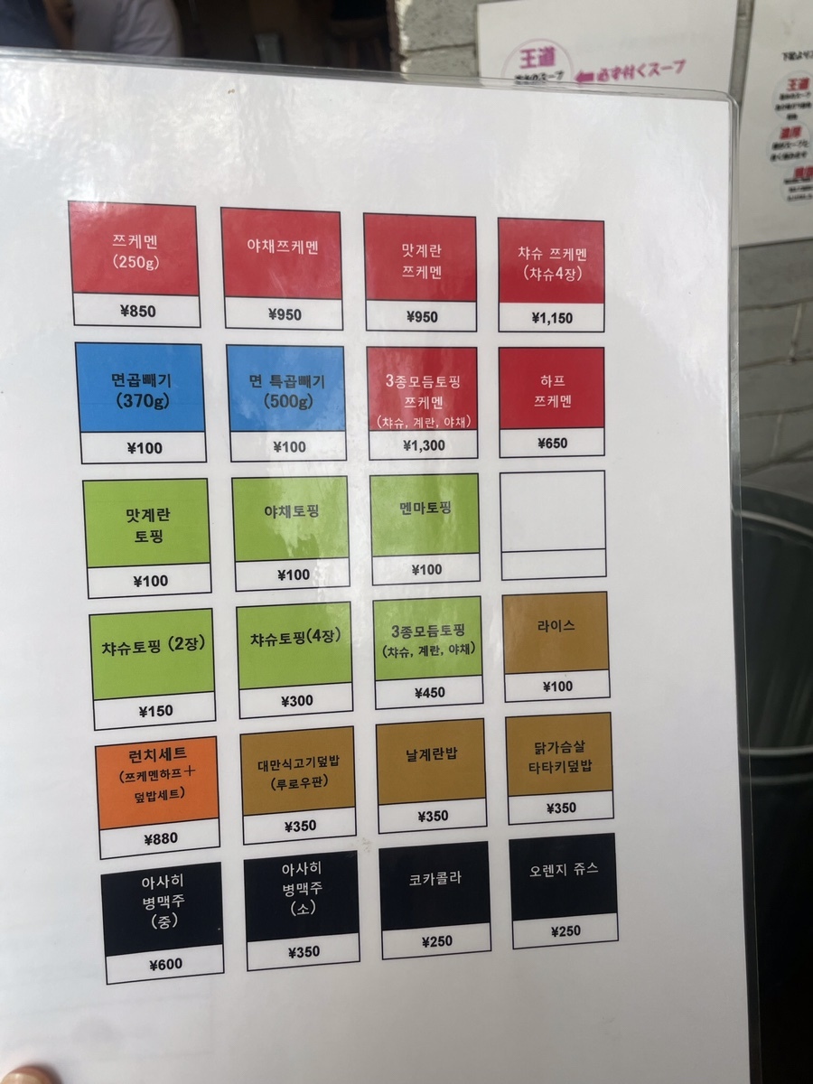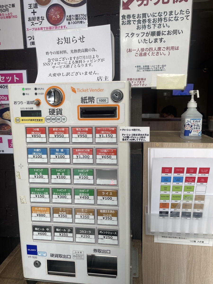 가게 문을 열면 이렇게 바로 자판기가 있어서 돈 넣고 원하는 메뉴 누르면 식권처럼 생긴 표가 나온다. 사장님께 식권을 드리면 주문 완료다.