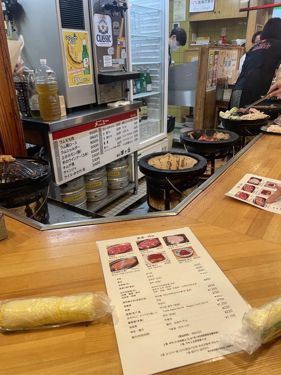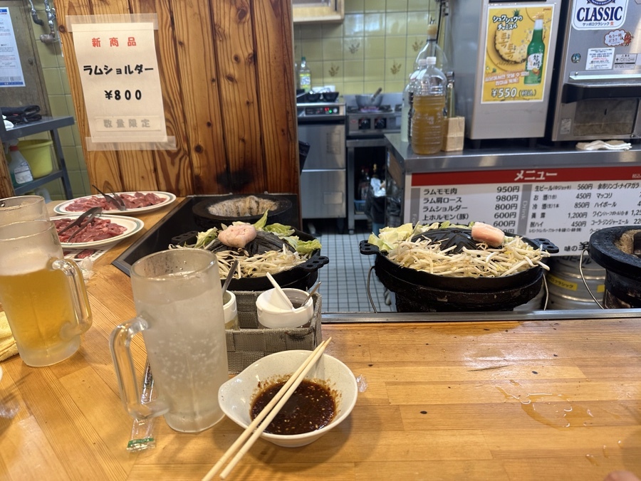 여기는 정말 강력히 추천한다. 별 백 개! 현지인 가이드 추천으로 오게 된 맛집이었는데 대기도 미친 듯 길지 않고 진짜 현지인 맛집이다. 삿포로 여행 오기 전에 이거저거 찾아봤을 때 칭기즈칸이라는 게 아주 많길래 칭기즈칸이라는 음식점이 있는 줄로만 알았는데 양고기 집을 다 칭기즈칸이라고 칭하던 거였다. 그런데 나랑 내 친구는 이 사실을 정말 몰랐다.