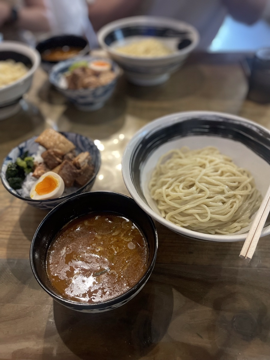 기본 쓰케멘을 시키면 국물이 2가지(기본 국물+원하는 맛 1가지) 나온다. 원하는 맛 1가지를 추가로 고르면 되고 점심시간에 가면 런치 세트(하프 쓰케멘 + 덮밥 세트)를 시킬 수 있는데 런치는 국물 1개만 나오므로 원하는 걸 고르면 된다.