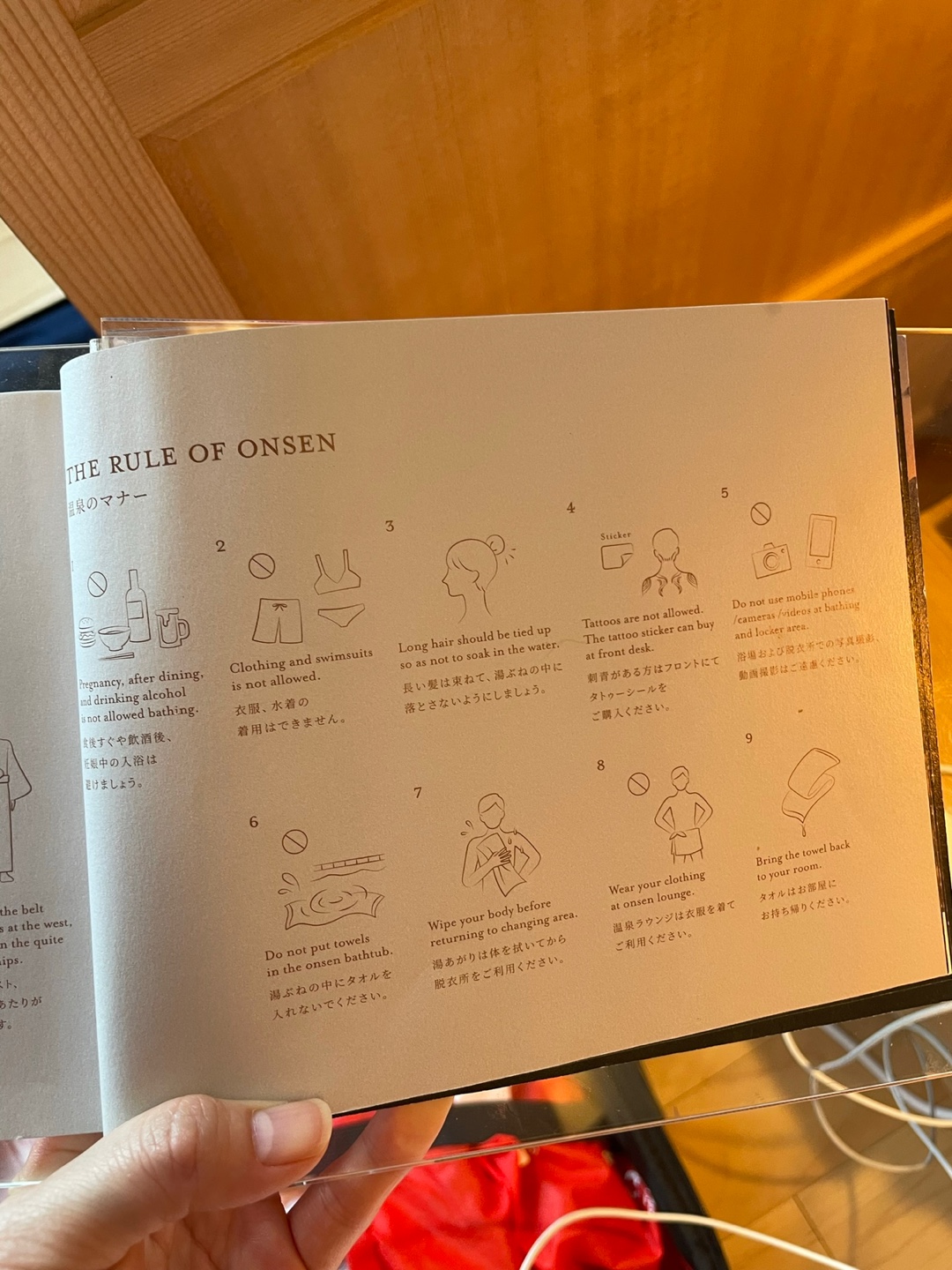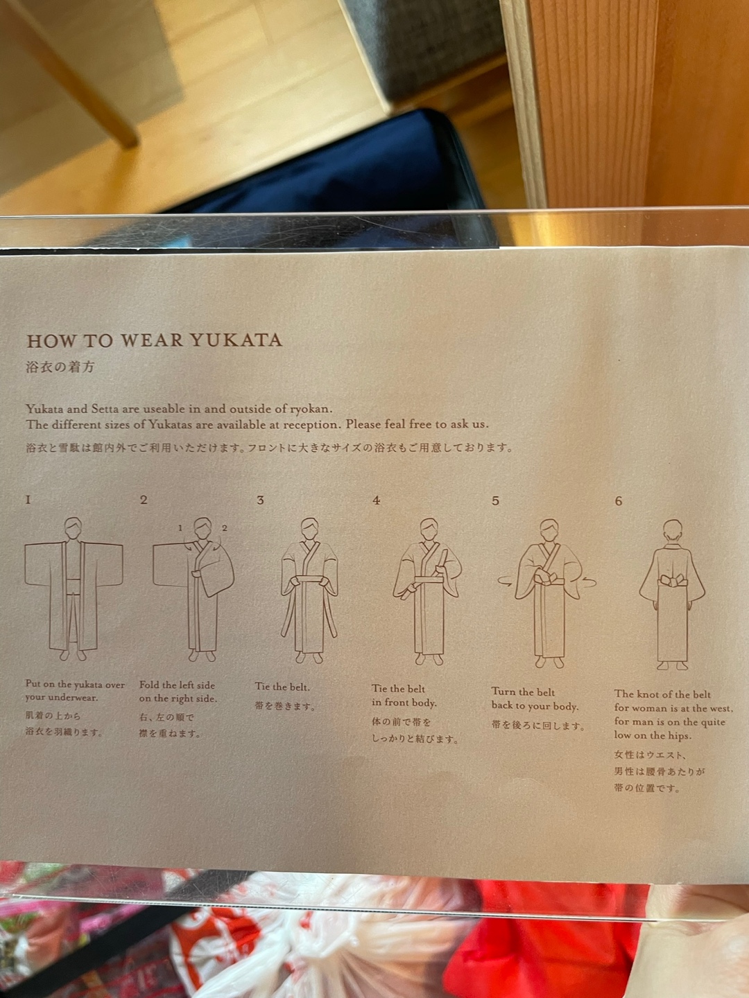 외국인도 꽤 많이 이용하다 보니 온천 이용 시 기본적인 매너와 유카타 입는 방법 등과 같은 설명서(?)도 방 안에 있었다. 신기해서 냉큼 찍어 봄..