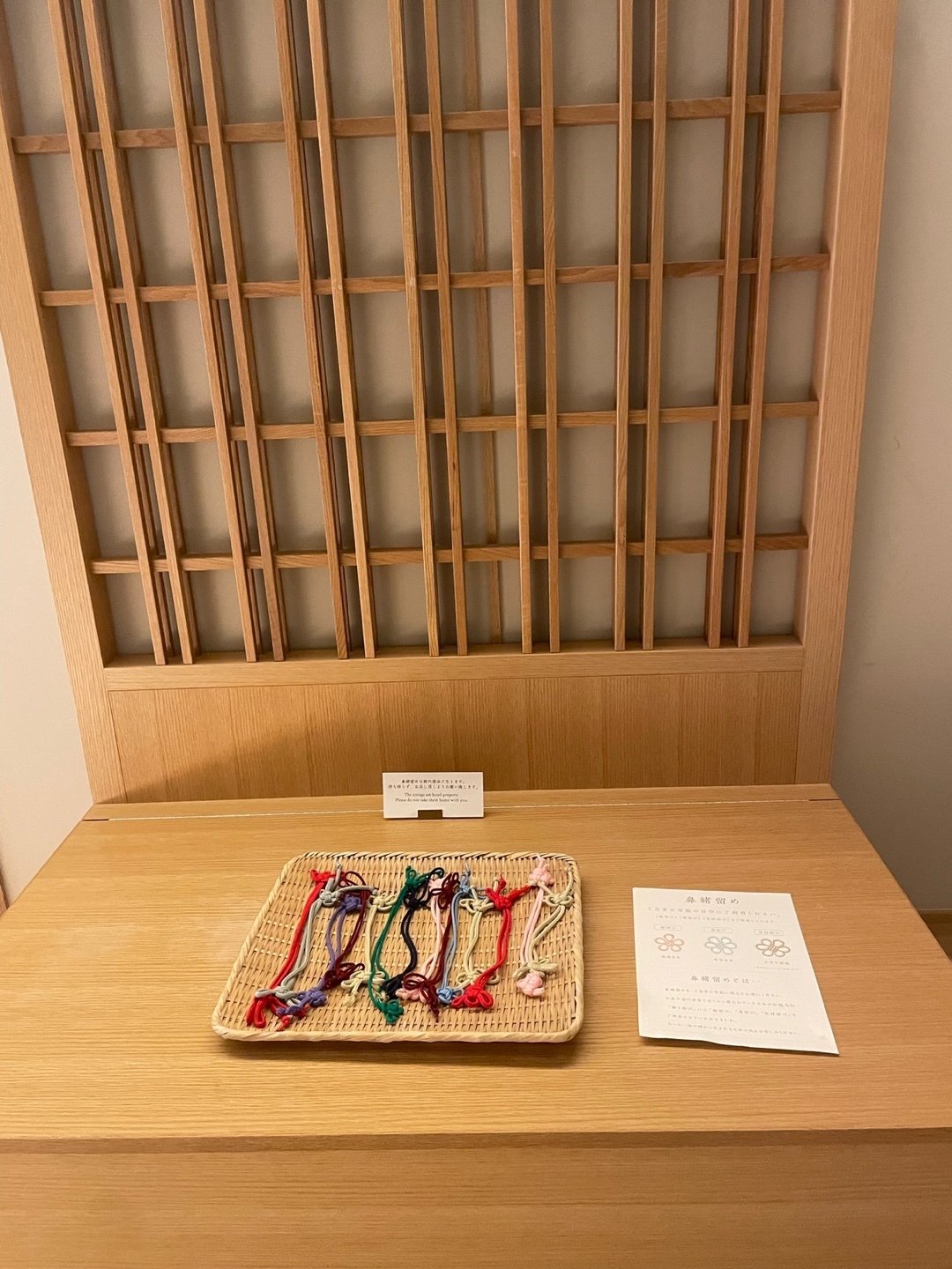 그리고 알록달록 예쁜 끈 같은 게 있었는데 각자의 나막신(근데 이걸 나막신이라고 불러도 될지) 비스무리한 슬리퍼에 묶어서 서로 신발이 섞이지 않게 하는 목적인 것 같았다. 뭔가 일본 특유의 이런 아기자기함과 귀여움?이 나는 좋다.